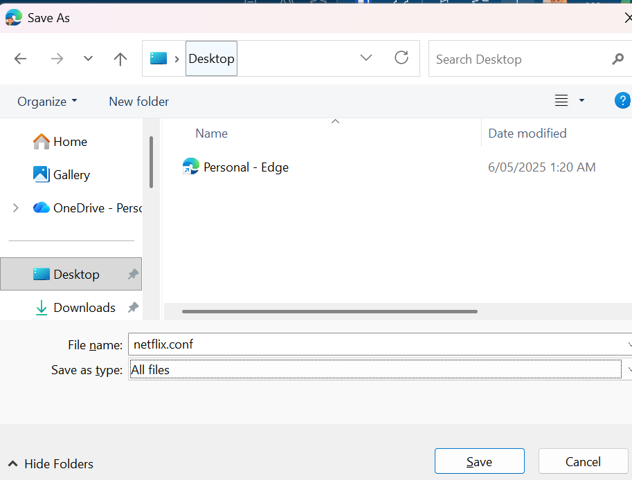 - You should now see the message Upload successful netflix.conf. Click Apply
