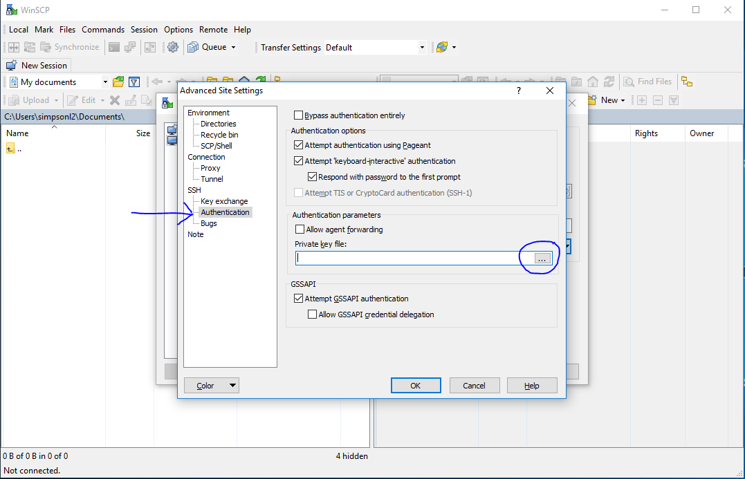 From there, choose Authentication under SSH, and choose your file.